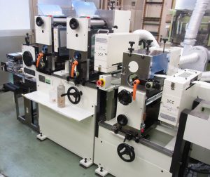 2015年12月29日 機械導入!2015年12月26日 2015年12月26日、年末あわただしい中、 ラベル印刷機を導入しました。 表面2色・裏面1色が印刷できるタイプです。 少ロットの1色から2色印刷の工業用途のラベル需要が増加、裏印刷の要望などの点から導入しました。 既にある表4色ラベル印刷機 2台と同じタイプで 印刷版の共有、各オペレータの技術の共有ができます。 相乗効果を狙います。 蛇行防止装置など、随所に新しいアタッチメントをつけております。 高品質小ロット多品種に最適の機械です。 年明けから本稼動していきます。