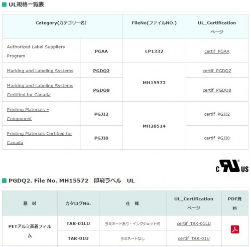 昨年後半から今年度、新たに取得したUL規格ラベルを